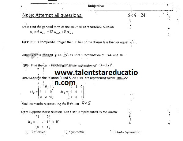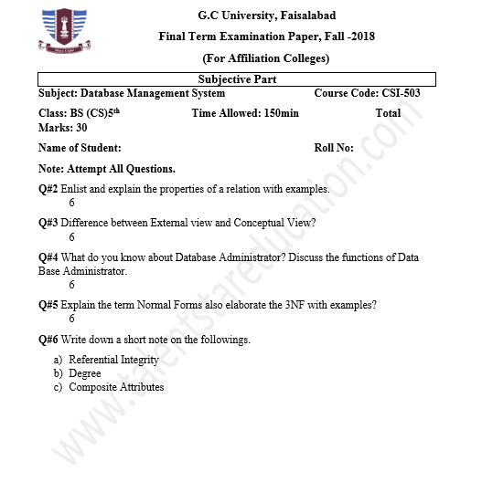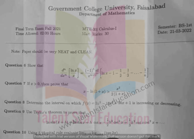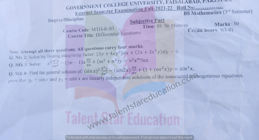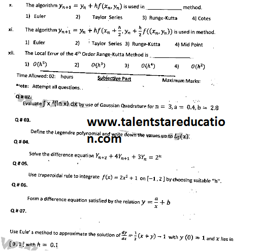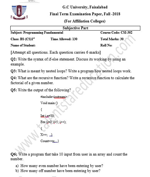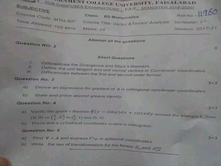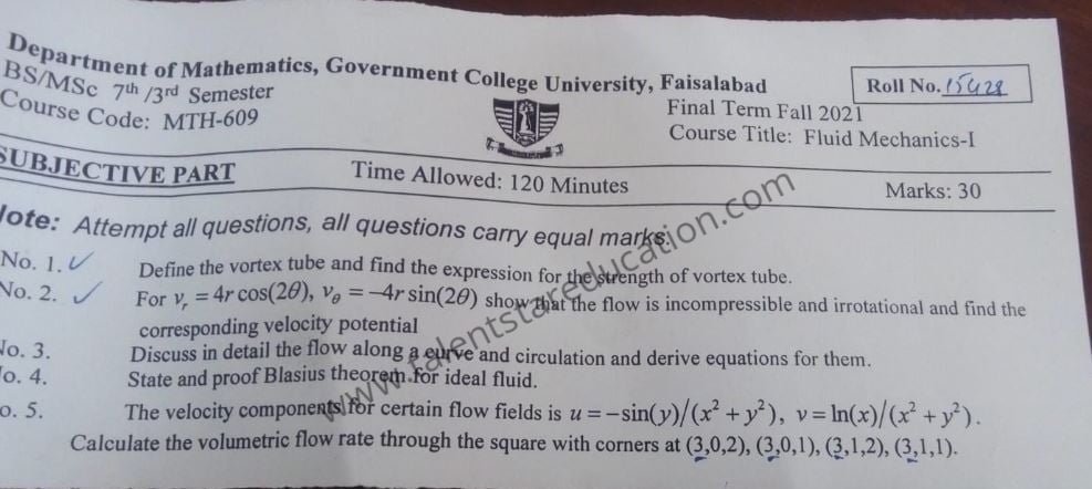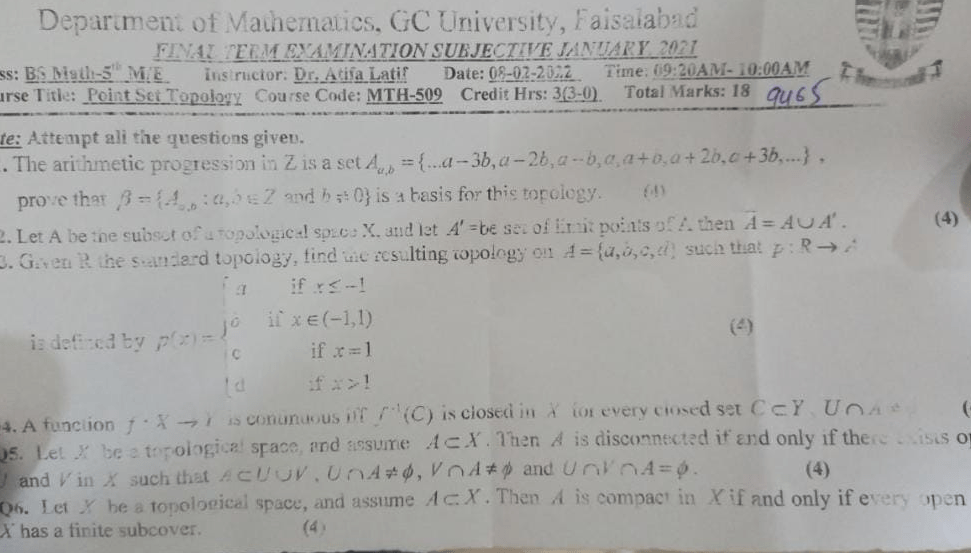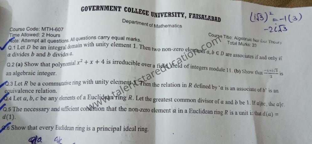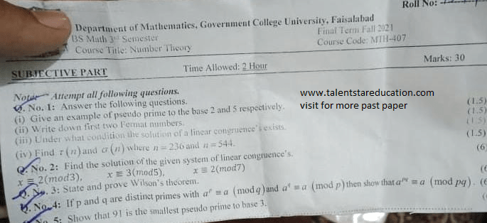 BS. Mathematics GCUF Past Papers for Affiliated Colleges Semester 01 ISL-302 Islamic Studies ENG-321 English-I MTH-301 Calculus-I MTH-303 Mathematical Method-I PHY-325 Physics-I Semester 02 PST-322 Pakistan Studies ENG-322 English-II STT-322 Statistics-I MTH-302 Calculus-II MTH-304 Mathematical Method-II Semester 03 MTH-401 Vector Calculus MTH-403 Mechanics I MTH-407 Communication Skill MTH-407 Number Theory MTH-R-03 Differential Equation MTH-405 Introduction to Computing STT-421 Statistics-II PHY-425 Physics-II Semester 04 MTH-402 Metric and Topological Spaces MTH-404 Differential Equations MTH-406 Numerical Analysis MTH-408 Operations Research CSI-422 C++ Semester 05 MTH-501 Real Analysis I MTH-503 Complex Analysis MTH-505 Vector and Tensor Analysis MTH-507 Algebra-I MTH-509 Point Set Topology Semester 06 MTH-502 Real Analysis-II MTH-504 Algebra-II MTH-506 Mechanics MTH-508 Functional Analysis MTH-510 Differential Geometry Semester 07 MTH-601 Advanced Group Theory MTH-603 Advanced Set Theory MTH-408 Operations Research ​ MTH-603 Partial Differential Equation MTH-617 Linear Algebra MTH-604 Algebraic Number Theory MTH-615 Numerical Analysis-I MTH-605 Mathematical Statistics-I Semester 08 MTH-602 Measure Theory MTH-604 Advanced Functional Analysis MTH-616 Theory of Optimization MTH-612 Numerical Analysis-II MTH-610 Mathematical Statistics-II