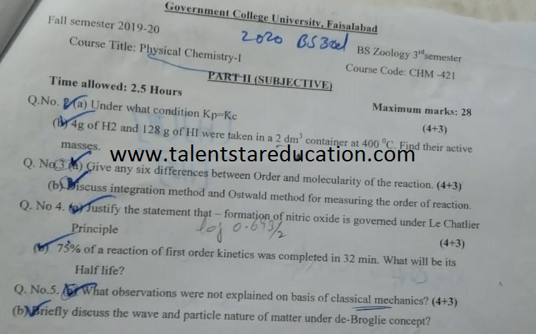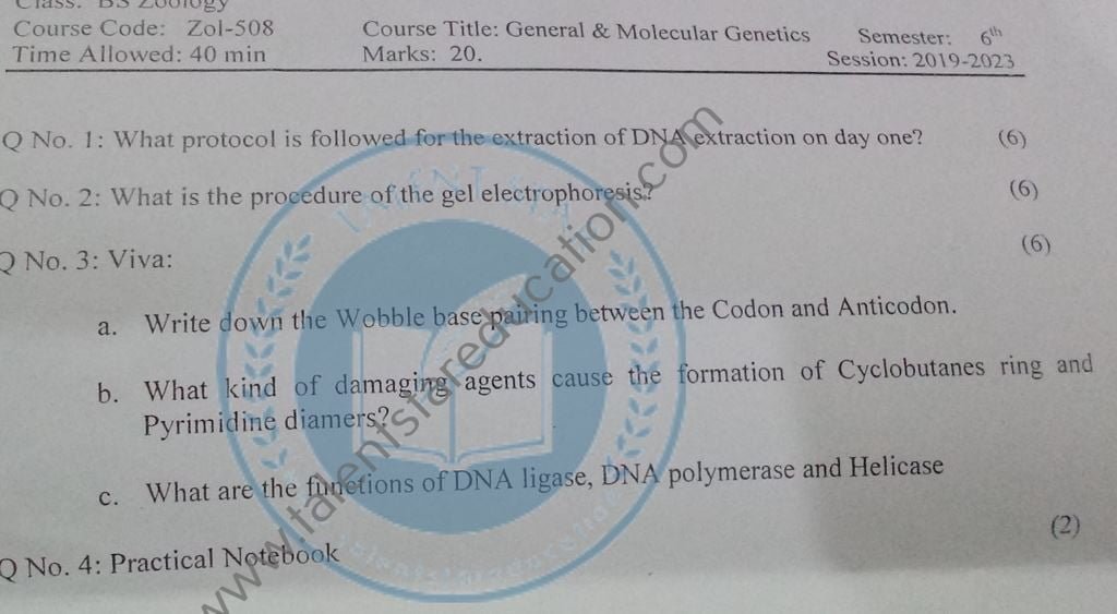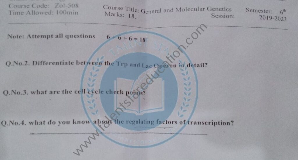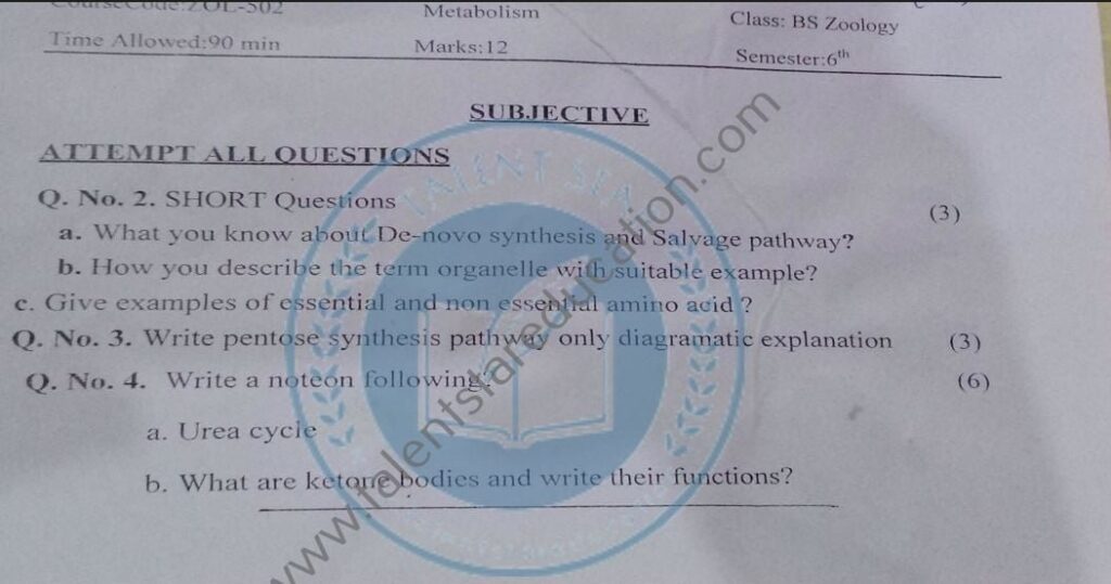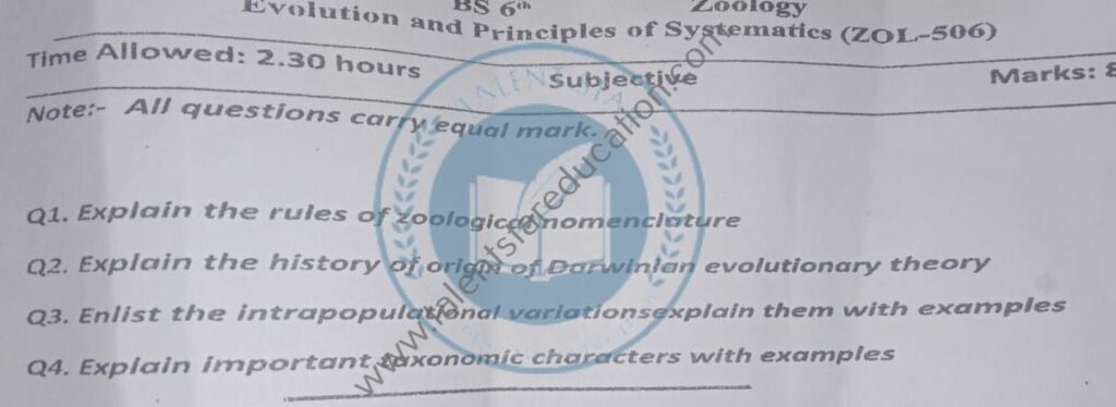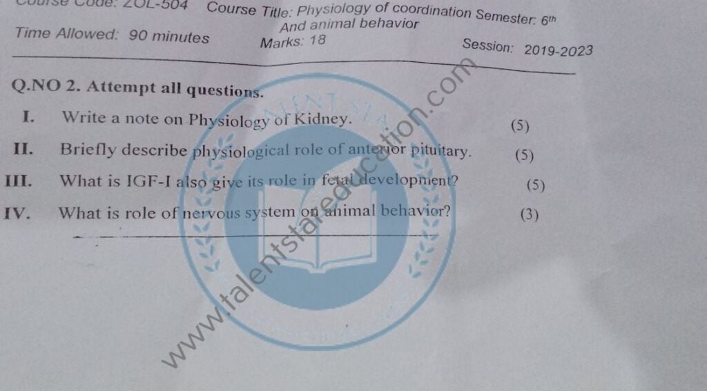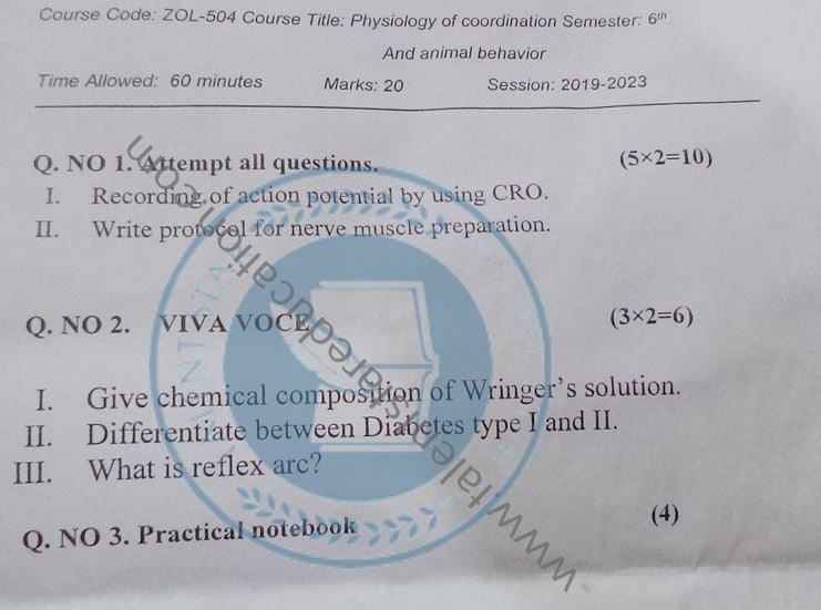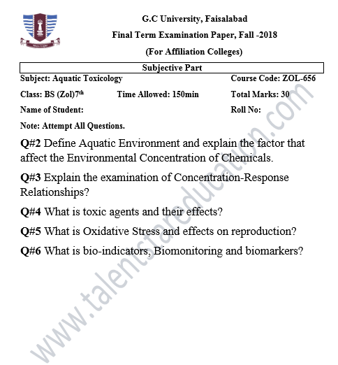 BS. Zoology GCUF Past Papers for Affiliated Colleges Semester 01 ZOL-301 Zoology – I (Principles of Animal Life-I) BOT-301 Diversity of Plants CHM-321 Introductory Chemistry ENG-321 Functional English ISL-321 Islamic Studies/Ethics Semester 02 ZOL-302 Zoology-II (Principles of Animal Life-II) MTH-321 Mathematics-I CHM-322 Inorganic Chemistry – I ENG-322 English Comprehension and Composition PST-322 Pakistan Studies Semester 03 ZOL-401 Zoology-III (Animal Diversity-I: Invertebrates) ZOL-403 Zoology-IV (Animal Diversity-II: Chordates) BOT-302 Systematics, Anatomy and Development CHM-421 Physical Chemistry –I ENG-421 Communication Skills Semester 04 ZOL-402 Zoology-V (Animal Form & Function-I) ZOL-404 Zoology-VI (Animal Form & Function-II) BOT-401 Cell Biology, Genetics and Evolution PSY-422 Introduction to Psychology CSI-422 Introduction to Computer Application Semester 05 ZOL-501 Cell and Molecular Biology ZOL-503 Biochemistry– I (Structure and Functions of Macromolecules) ZOOL-505 Advance Enviromental Biology ZOL-505 Animal Physiology ZOL-507 Animal Behaviour ZOL-509 General and Molecular Genetics Semester 06 ZOL-502 Biostatistics ZOL-506 General and Molecular Genetics MIC-301 Introductory Microbiology ZOL-508 Principles of Zoogeography ZOL-510 Biochemistry – II (Metabolism) ZOL-512 Physiology of Coordination and Animal Behavior Semester 07 ZOL-601 Evolution and Principals of Systematics ZOL-605 Fisheries ZOL-606 Fundamentals of Entomology ZOL-607 Research Methodology ZOL-609 Principles of Paleontology ZOL-656 Aquatic Toxicology Semester 08 BNB-402 Basic Bioinformatics ZOL-606 Wildlife of Pakistan ZOL-608 Bioremediation and Bio-processing ZOL-692 Biodiversity